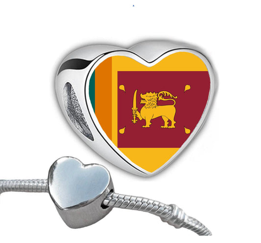 Sri Lanka Sri Lankan Flag Heart Charm for Bracelet Stainless Steel Jewellery Pendant