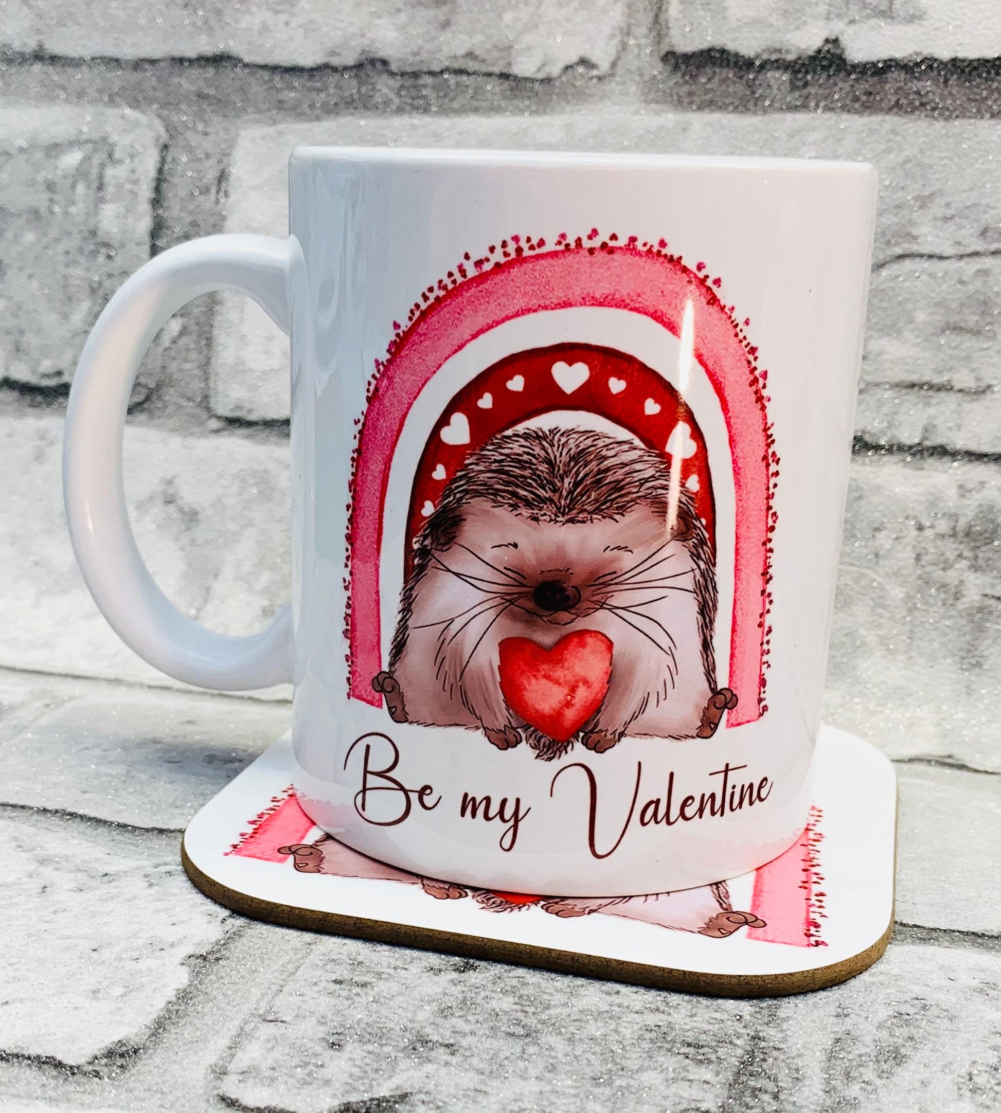 Cute Hedgehog 'Be my Valentine' mug and coaster set