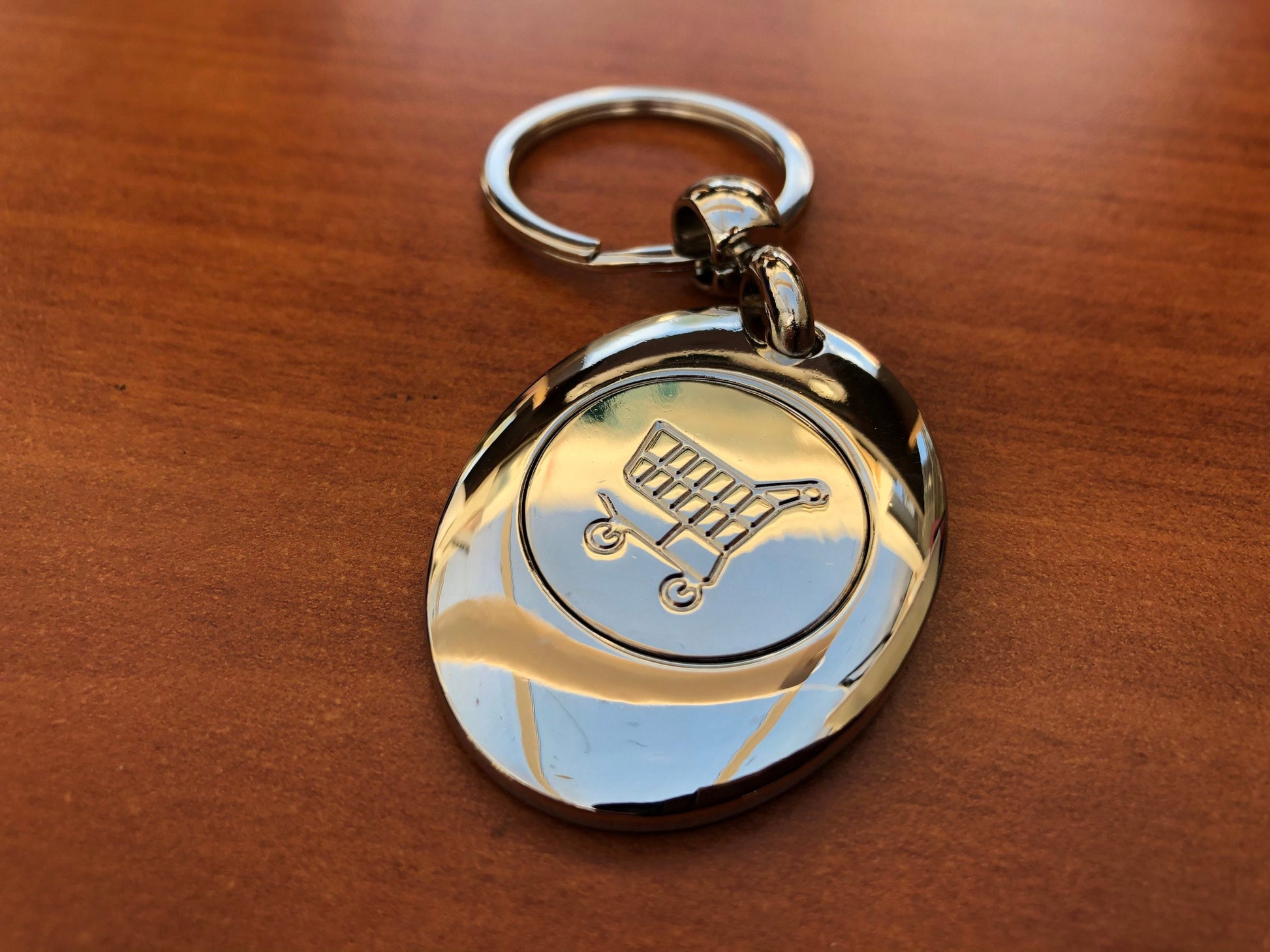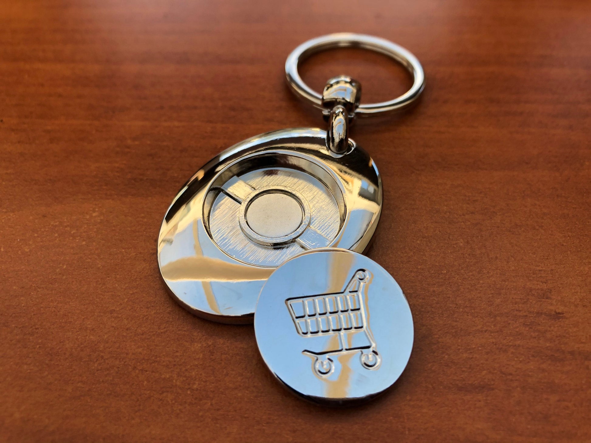 Really useful key ring with a magnetised trolley token and an animal printed insert.
