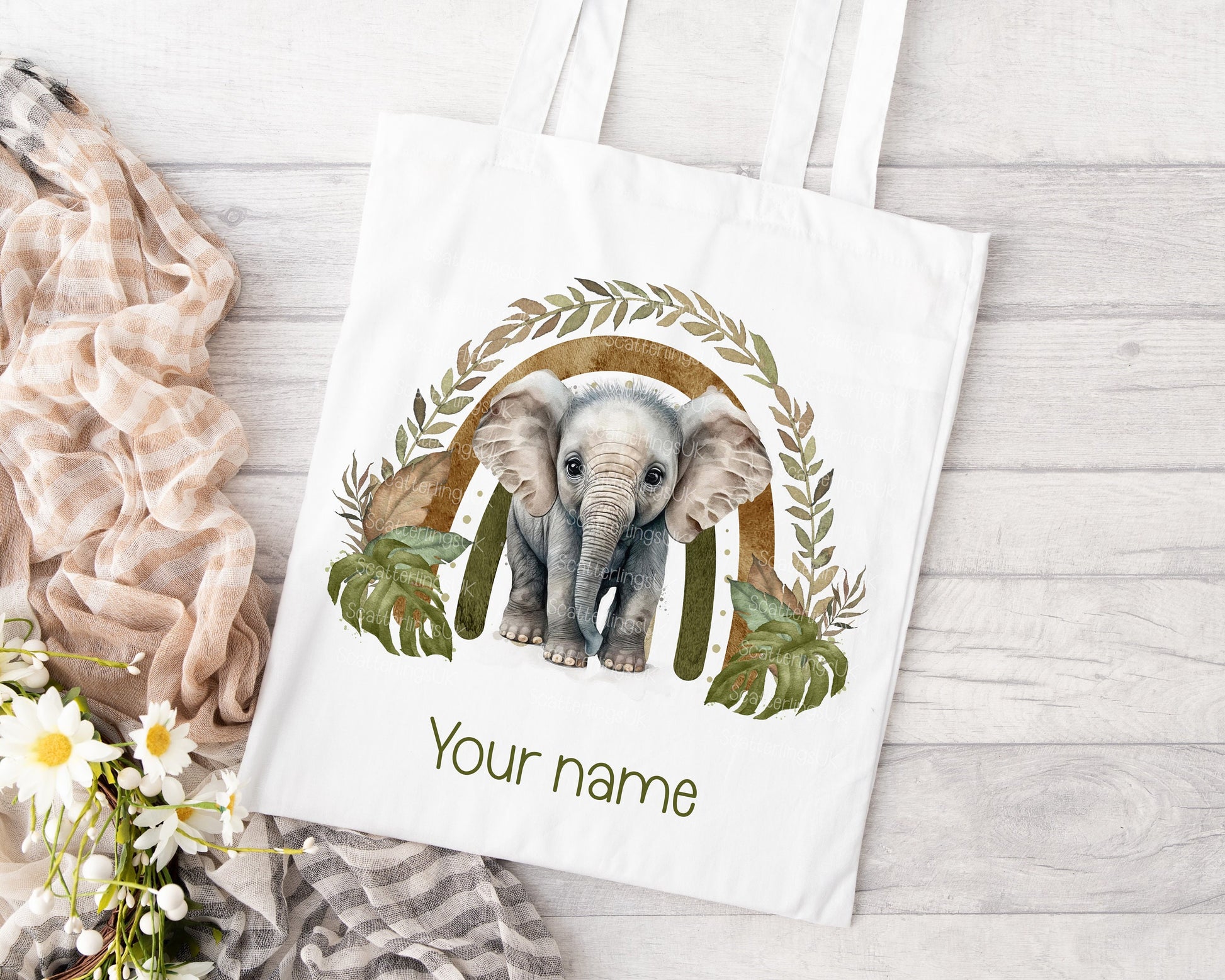Elephant Rainbow personalised custom white tote bag gift for teacher mum nan reusable eco-friendly safari jungle