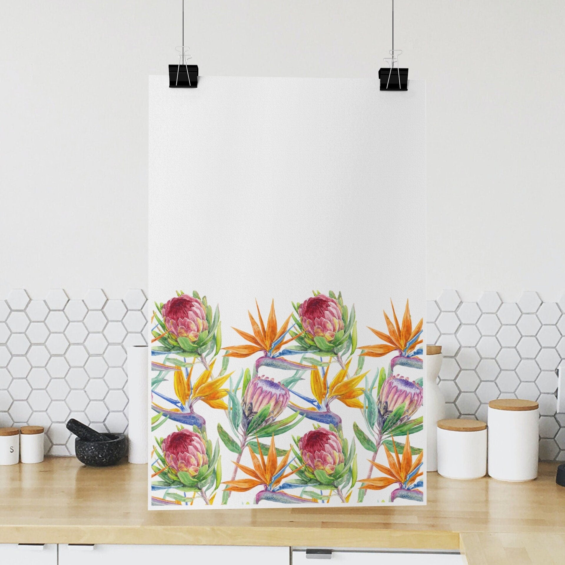 Kitchen Tea towel Protea and Strelitzia design floral tea towel South African flowers bar towel