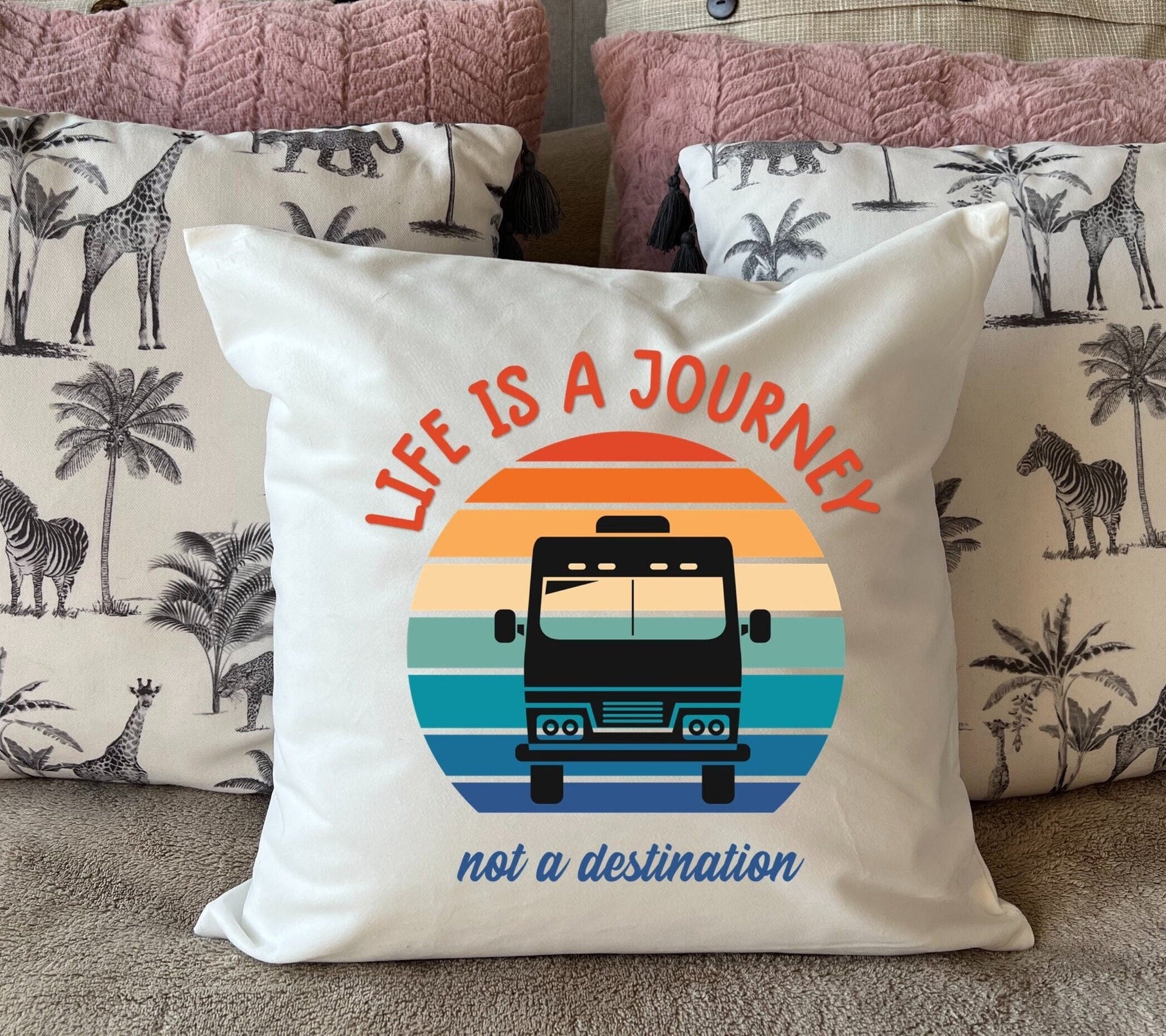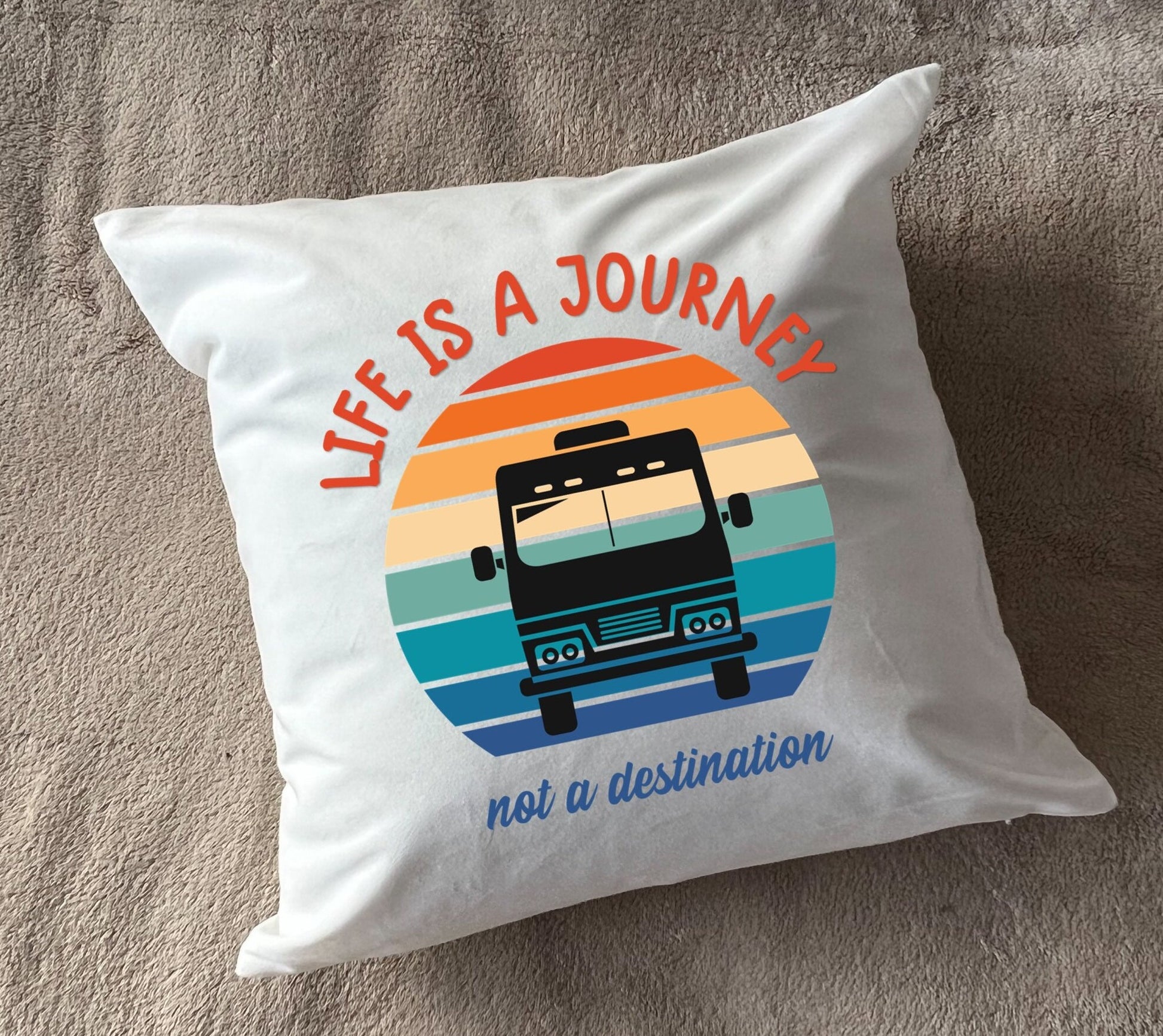 Life is a Journey, not a destination Motorhome, Camper-van or Caravan plush white deluxe 'soft feel' scatter cushion.