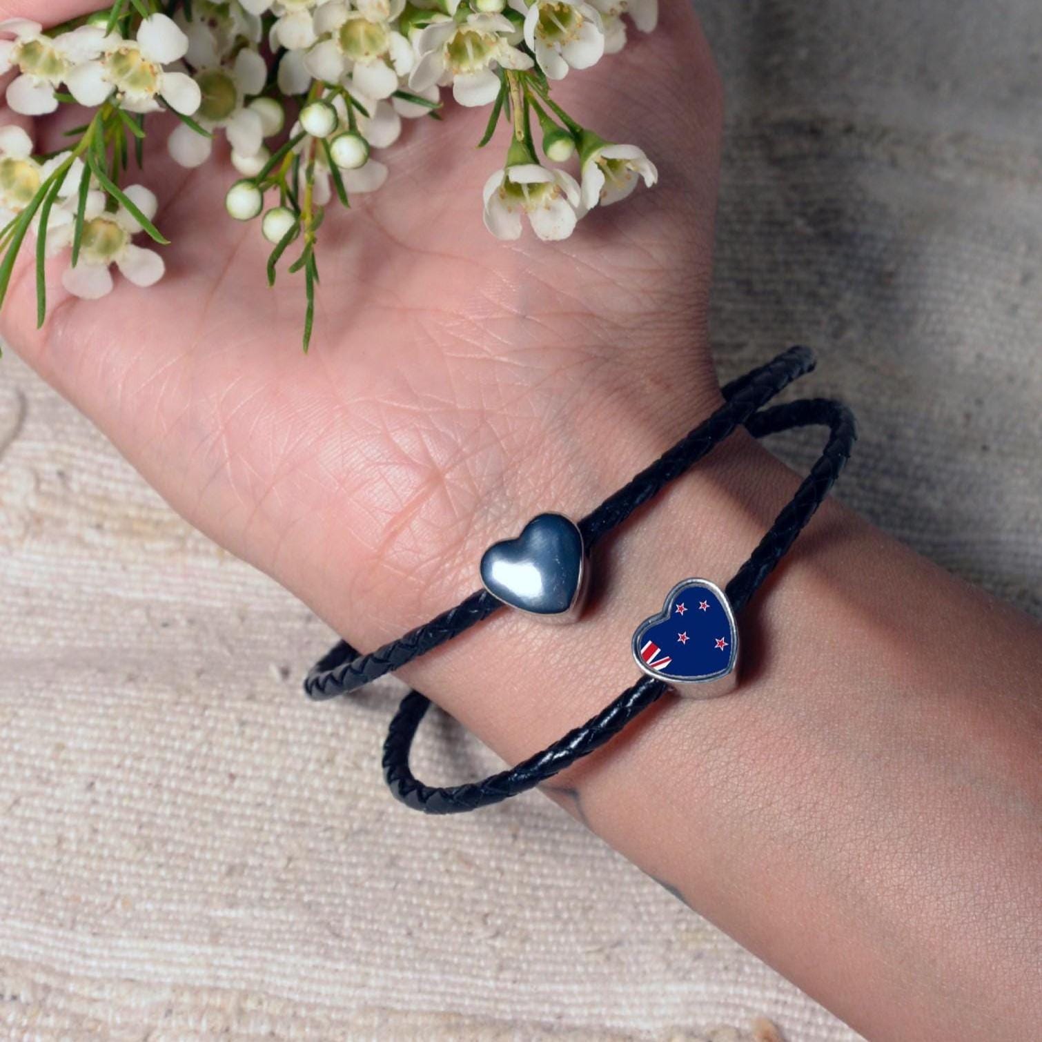 New Zealand Flag heart stainless steel charm bead Personalised Charm Add on bead Large hole bead Valentine’s gift for mom mum CHARM ONLY