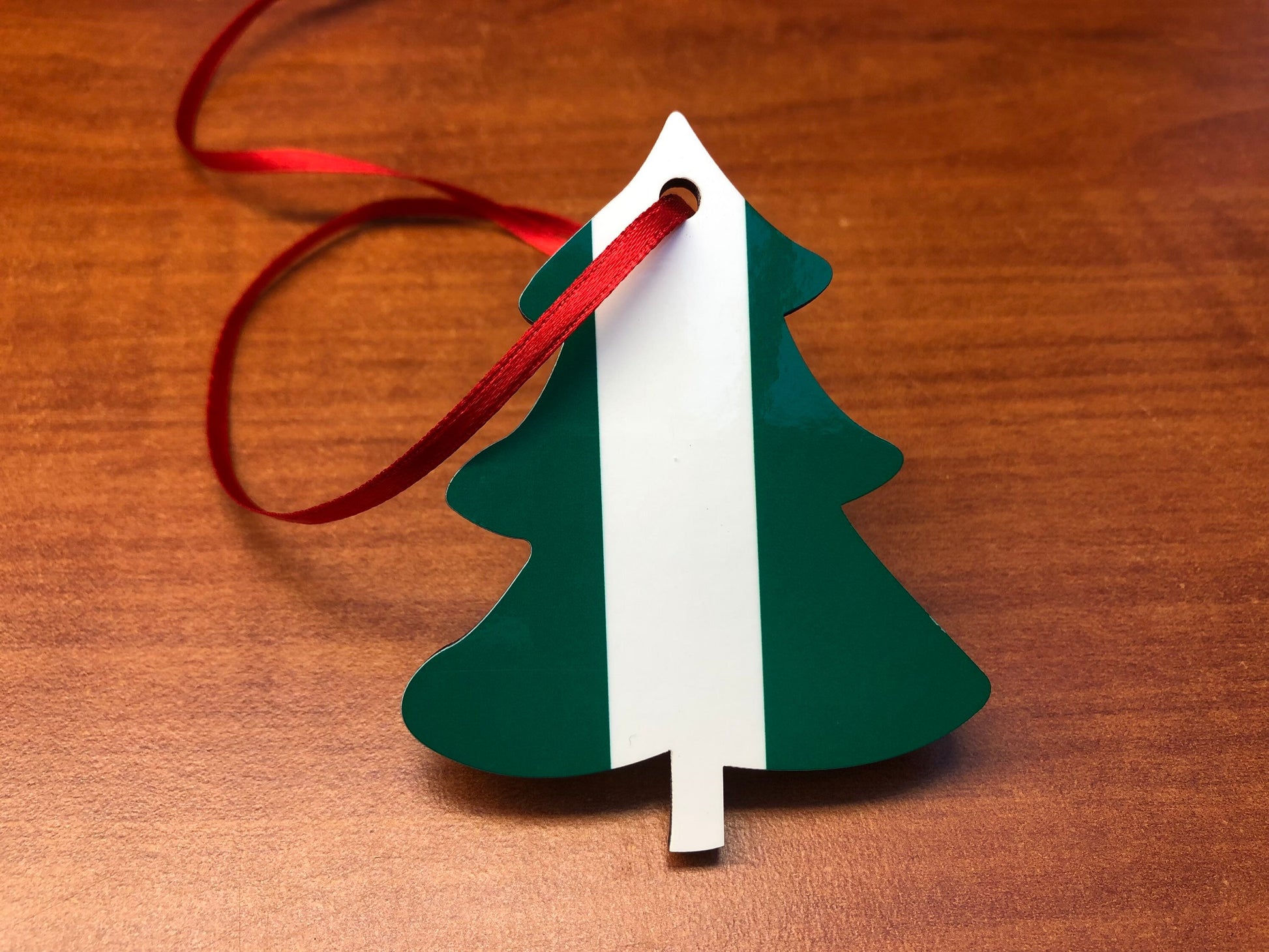 Beautiful Christmas tree shaped decoration, hand printed on both sides with the Nigerian flag.