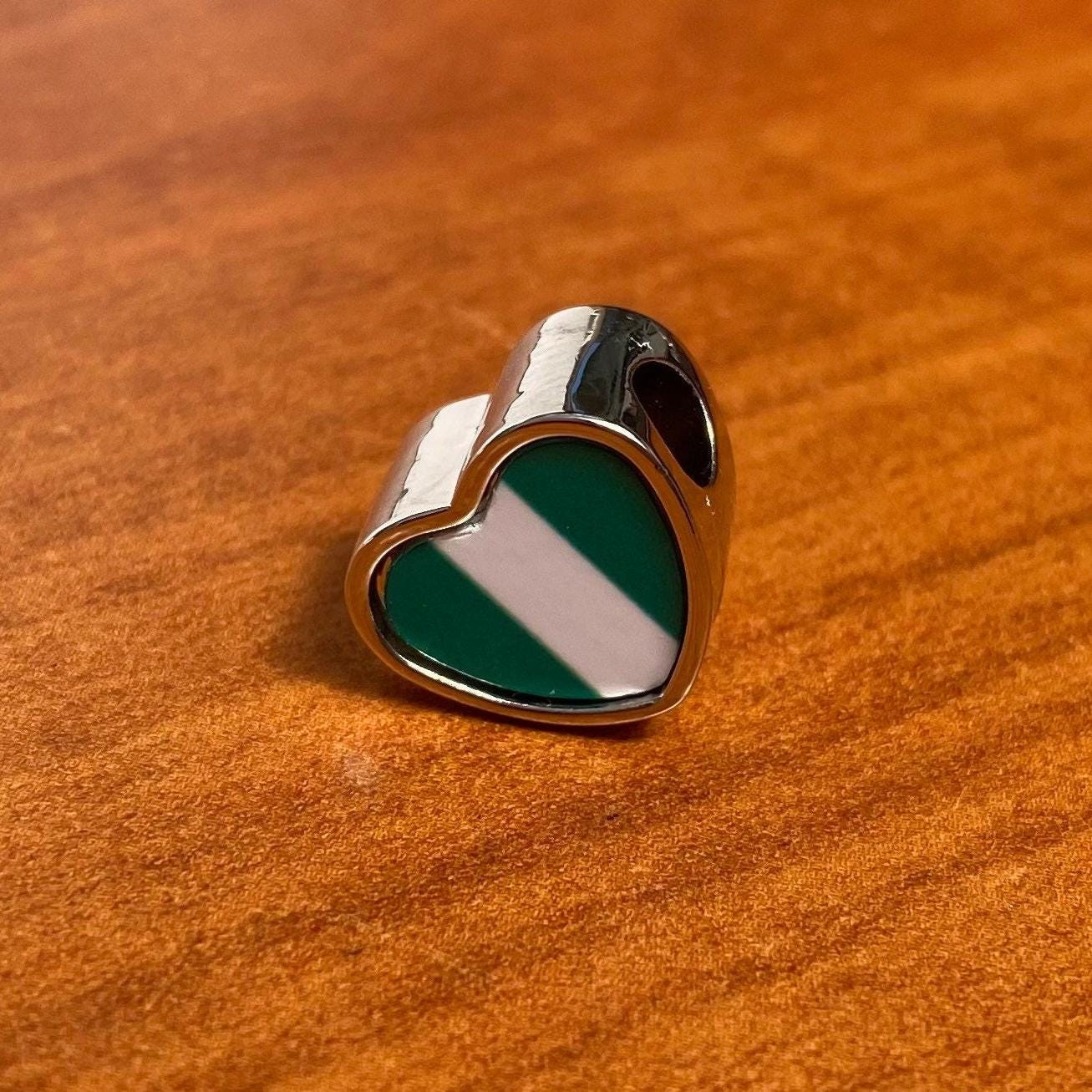 Beautiful hand printed heart shaped bracelet charm with Nigeria's flag detail. Personalised charm