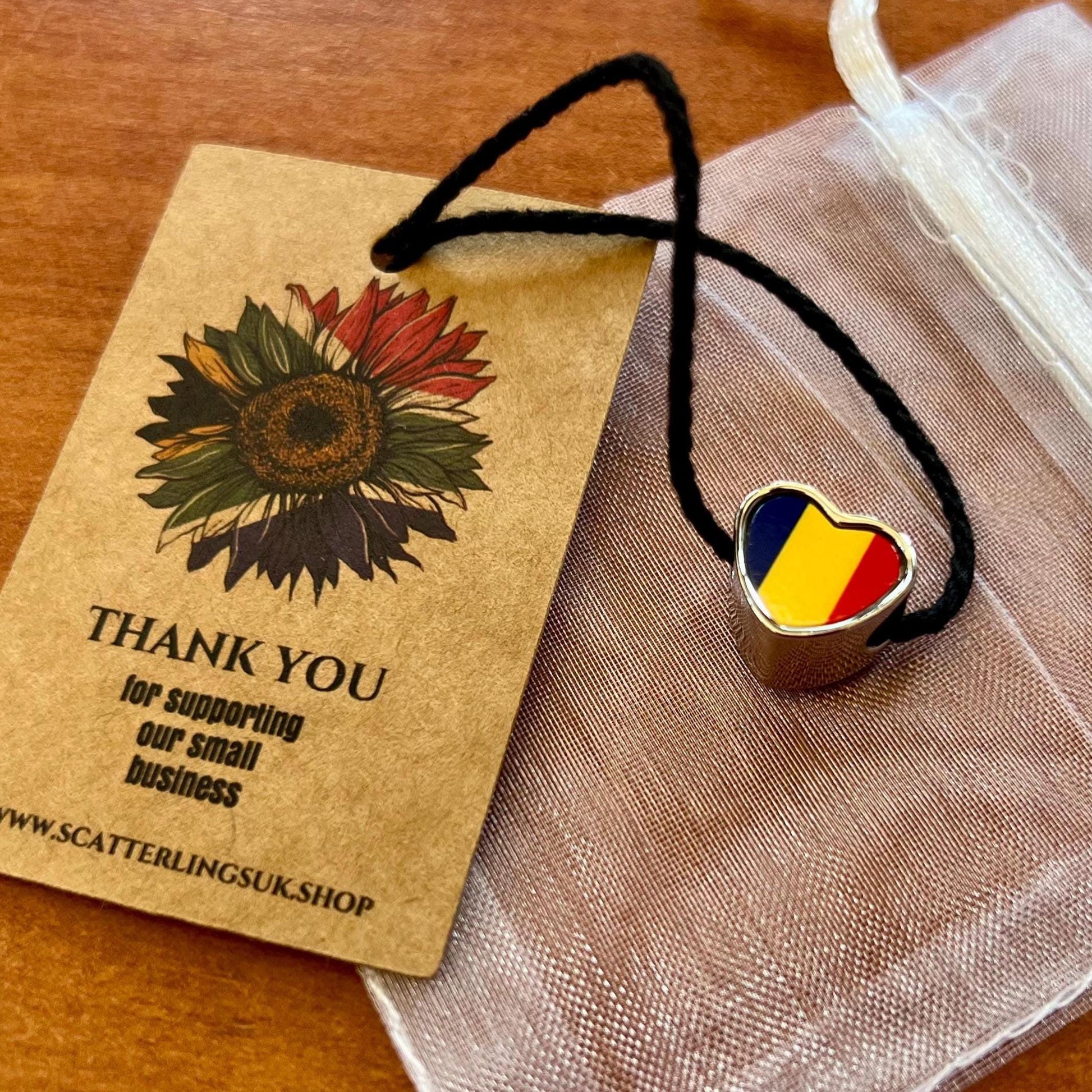 Romania Romanian flag heart shaped bracelet stainless steel charm bead Personalised Add on charm Large hole bead Valentine gift for mom mum