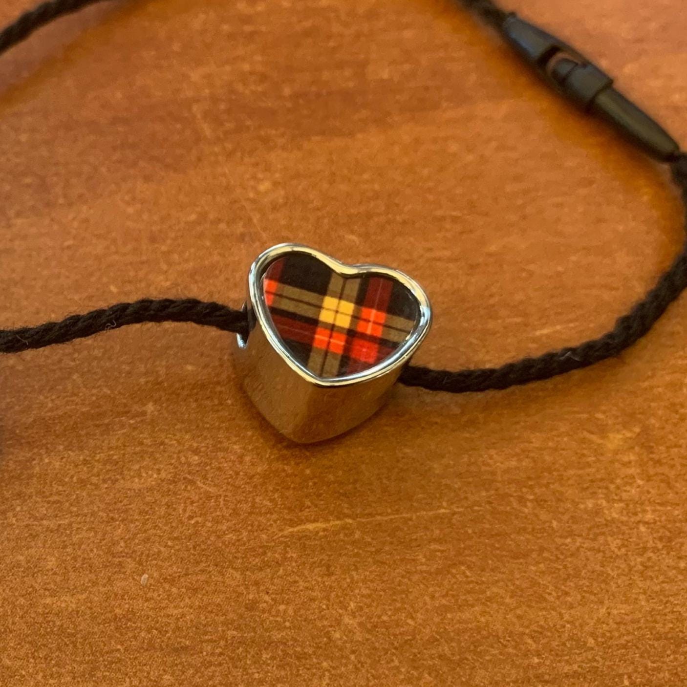 Scots tartans heart shaped bracelet stainless steel charm bead Charm personalised with choice of Scottish tartan. Add on bead Valentine Gift