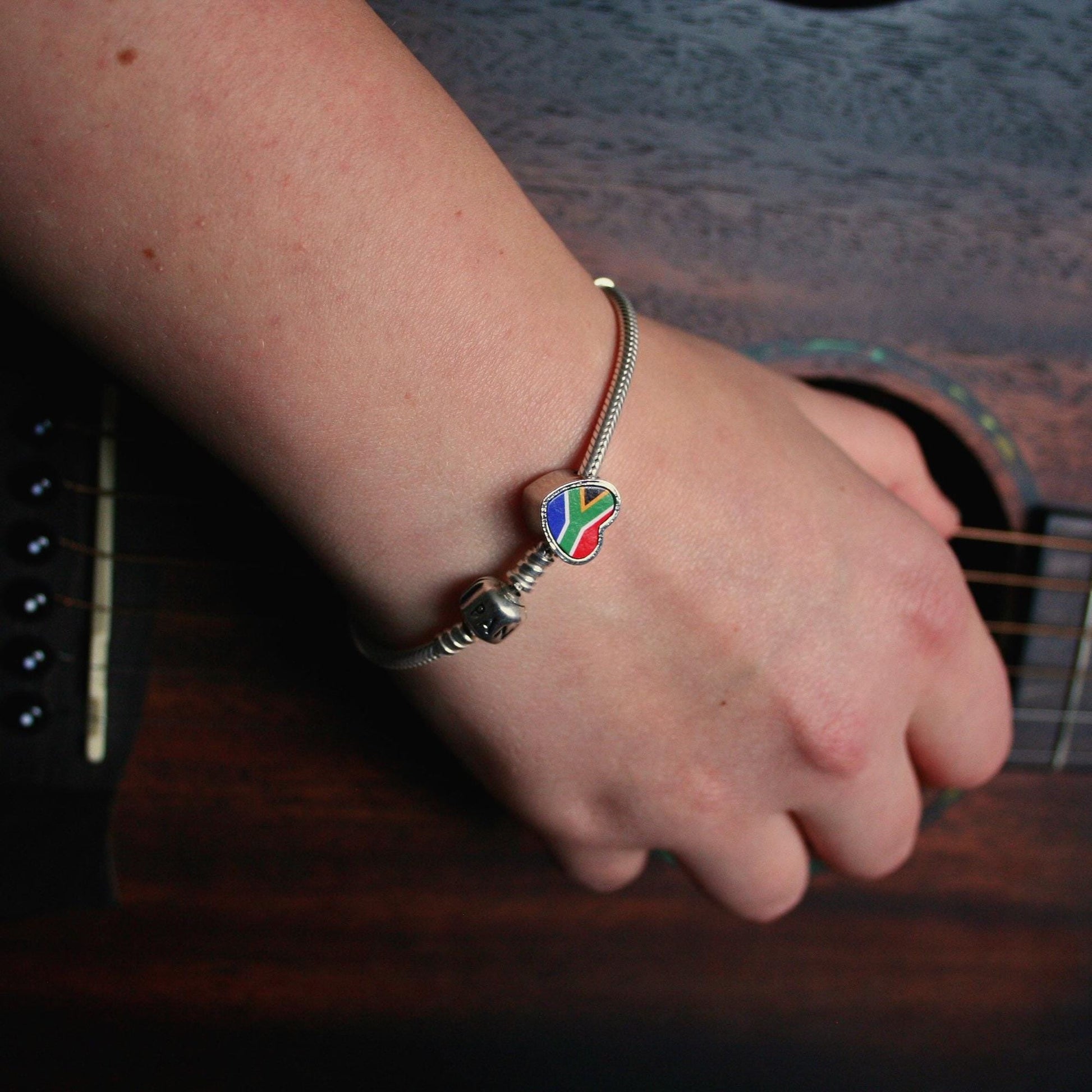Beautiful heart shaped silver effect charm with South African flag detail. Charm only, fits most popular bracelets. Makes a wonderfully unique gift for any occasion. Handmade jewellery. Silver coloured metal alloy. ALLERGY ADVICE: The charm is made from 316L stainless steel, therefore extremely durable and tarnish resistant. It will continue to look great on your bracelet for many years.