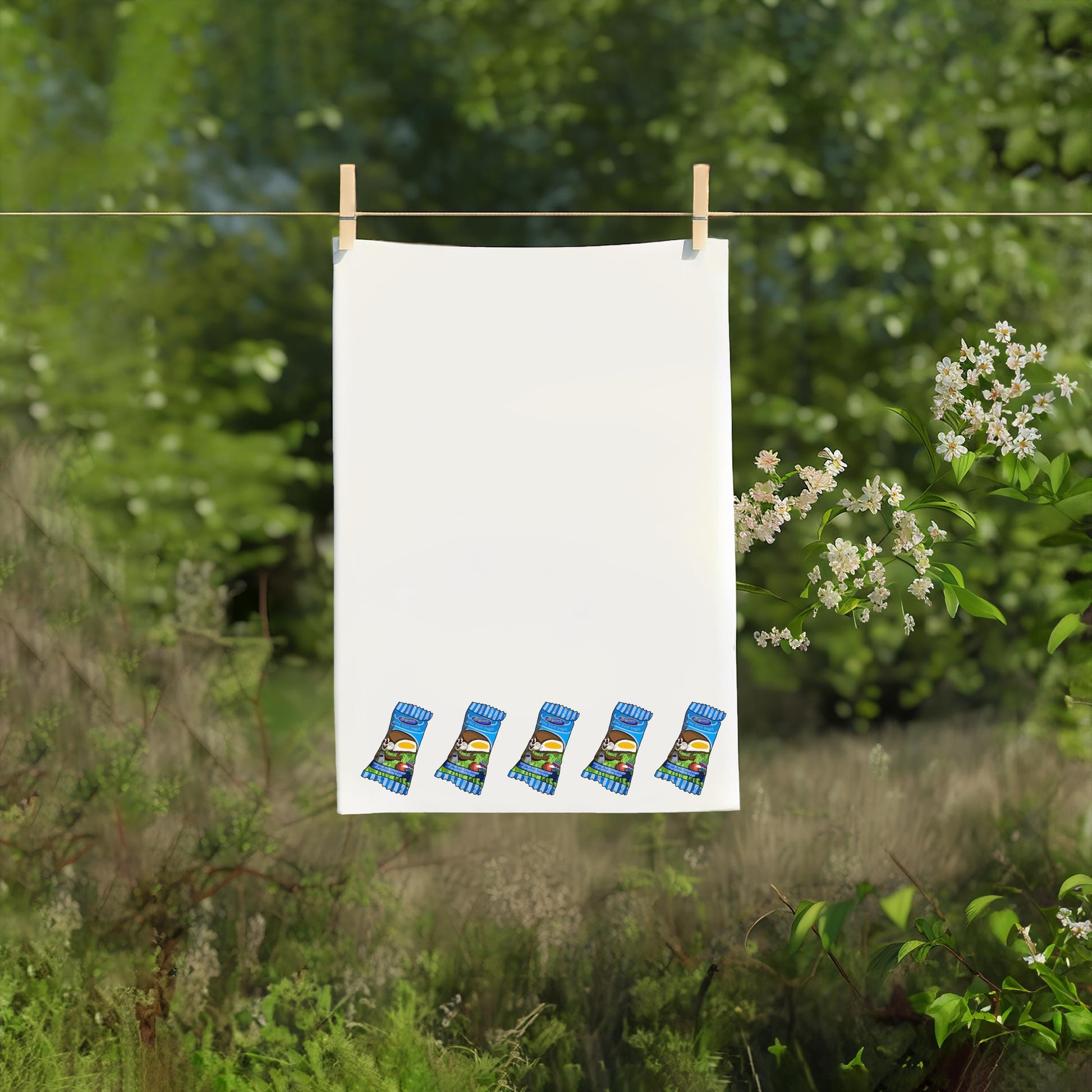 Kitchen Tea towel South African Easter Egg design featuring original artwork of a South African Beacon Marshmallow Chocolate Egg.