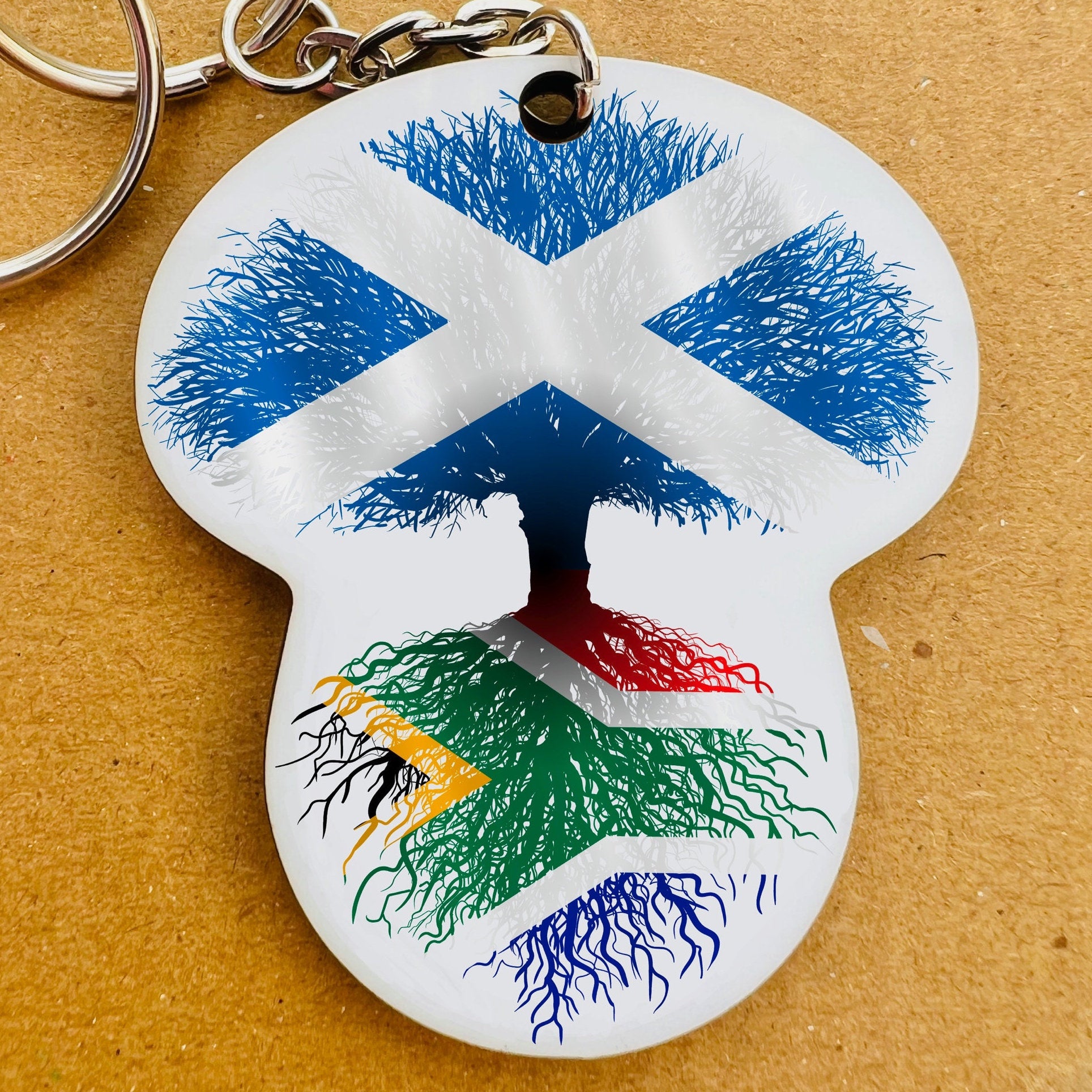 South African flag Scotland St Andrews cross keyring keychain heritage roots New home housewarming immigration christmas gift personalised
