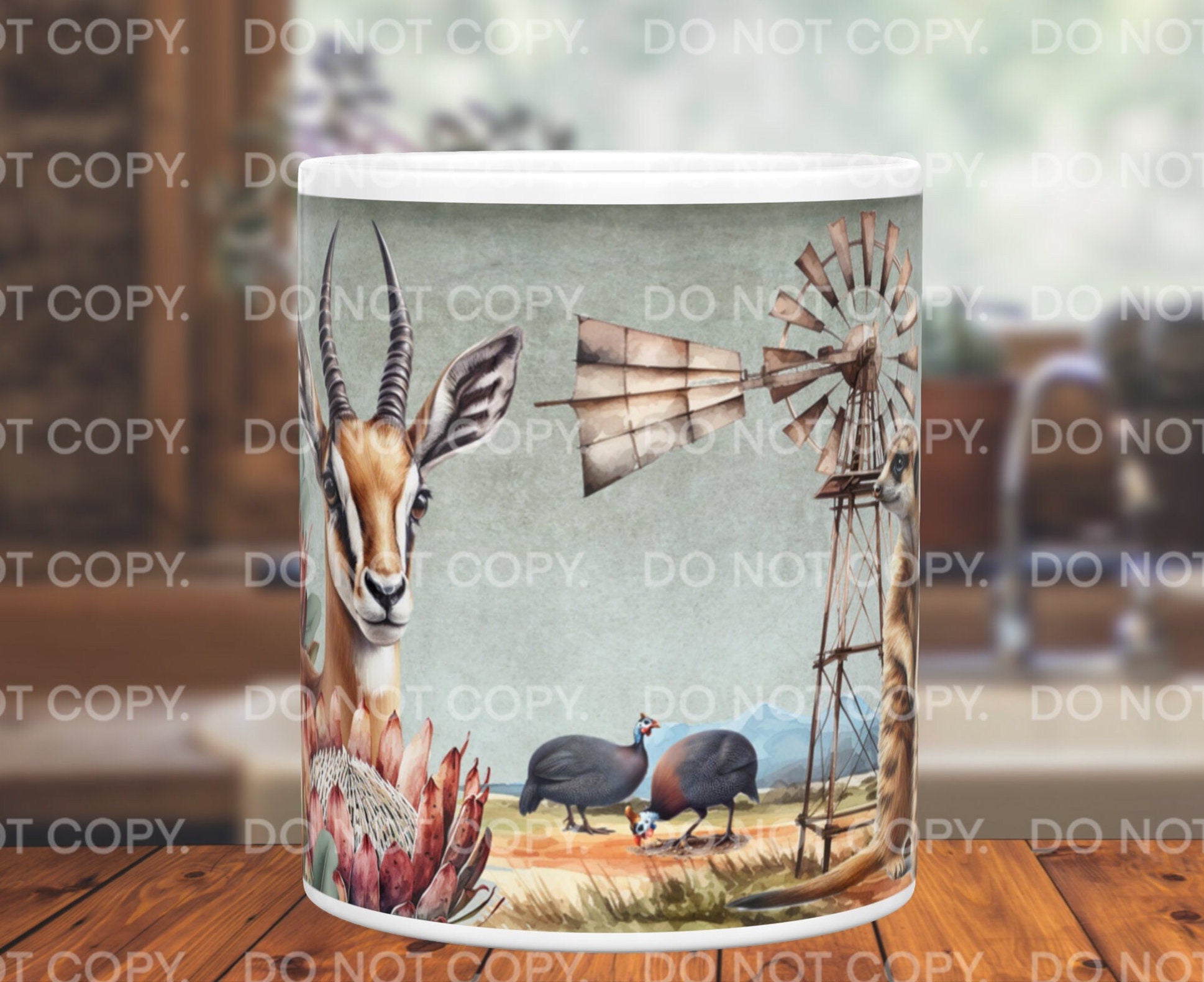 Springbok Meerkats Protea Guinea Fowl Windmill Windpomp South Africa 11oz mug Karoo Platteland Afrikaans gift