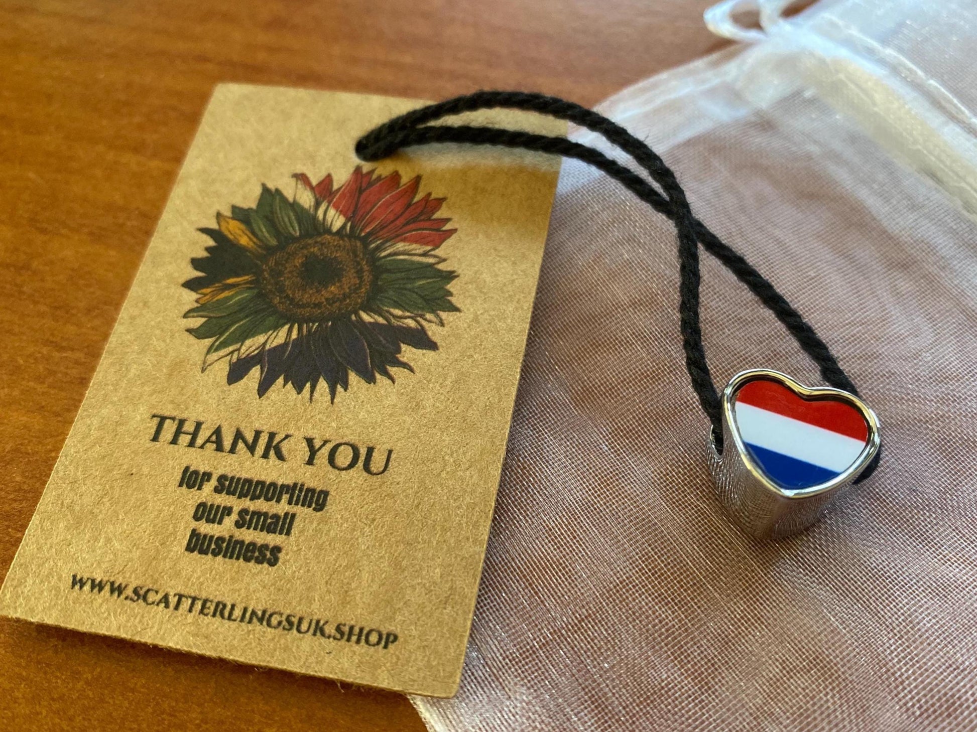 The Netherlands Holland Flag heart stainless steel charm personalised charm Add on charm Large hole bead Valentine’s gift for mom mum
